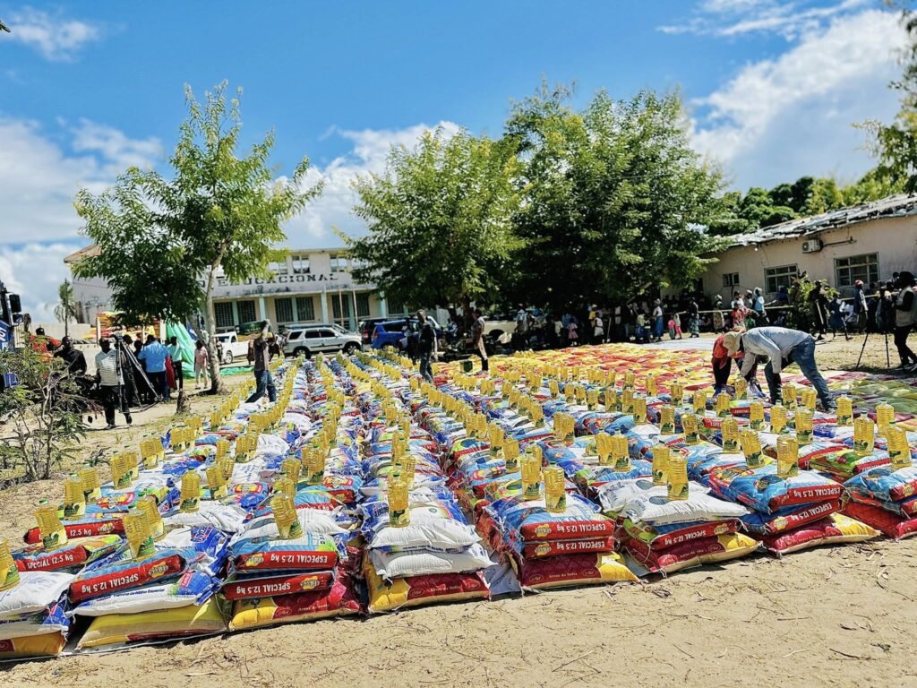 Os produtos distribuídos incluíram bens de primeira necessidade, como arroz, farinha, óleo alimentar, feijão e outros itens essenciais, com o objectivo de garantir o sustento temporário dos agregados familiares beneficiários.